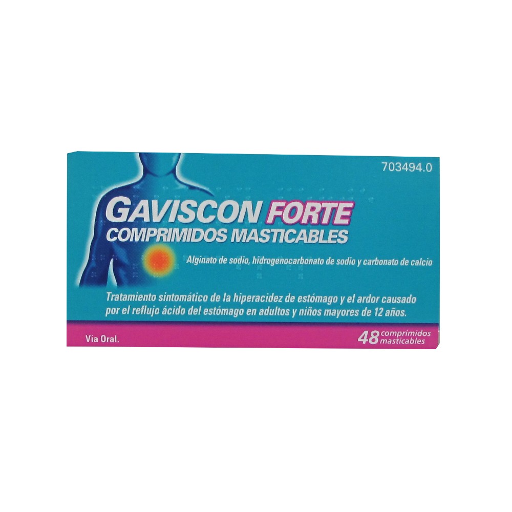 Gaviscon forte 48 comprimidos masticables tratamiento sintomático de la hiperacidez de estómago y/o ardores.